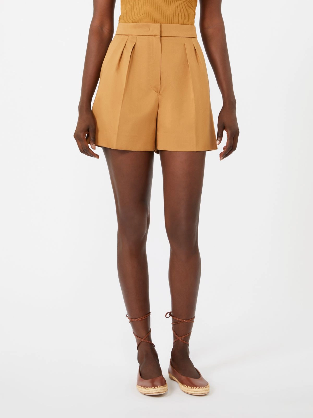 High-waisted shorts customised with embroidered Max Mara logo detail on the back of the waist.