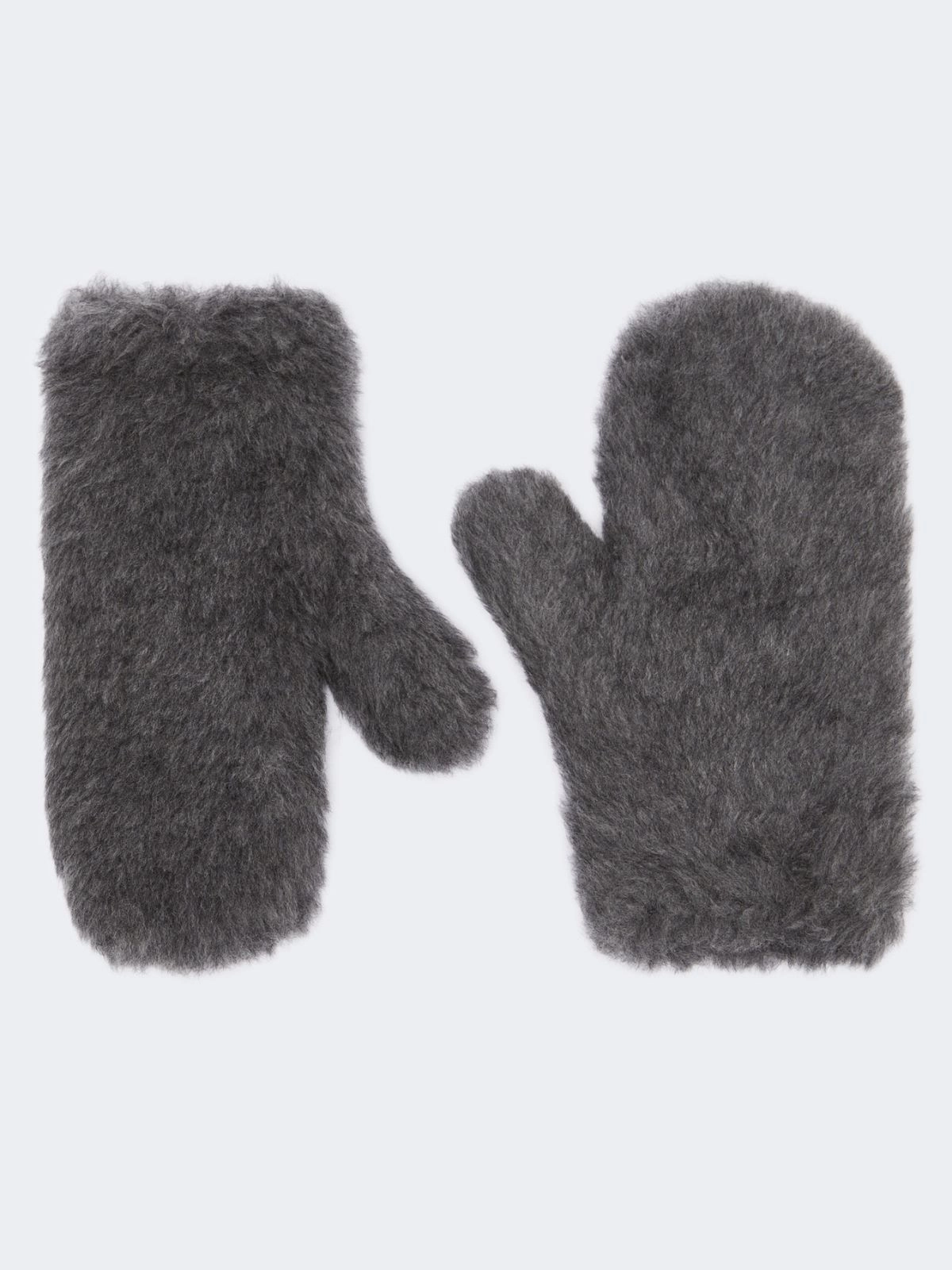Mittens in wool and alpaca Teddy fabric + MEDIUM GREY - Max Mara