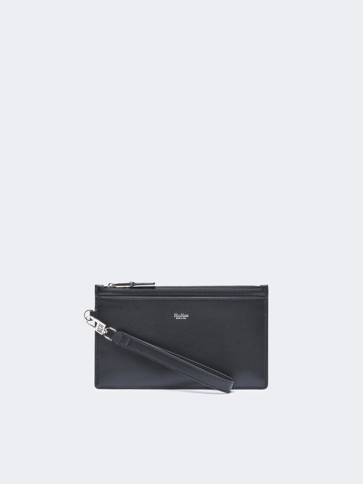 Flat pouch with removable wrist strap. Small Monogram clasp that can be attached to the inside of Max Mara bags or to the MLace strap.