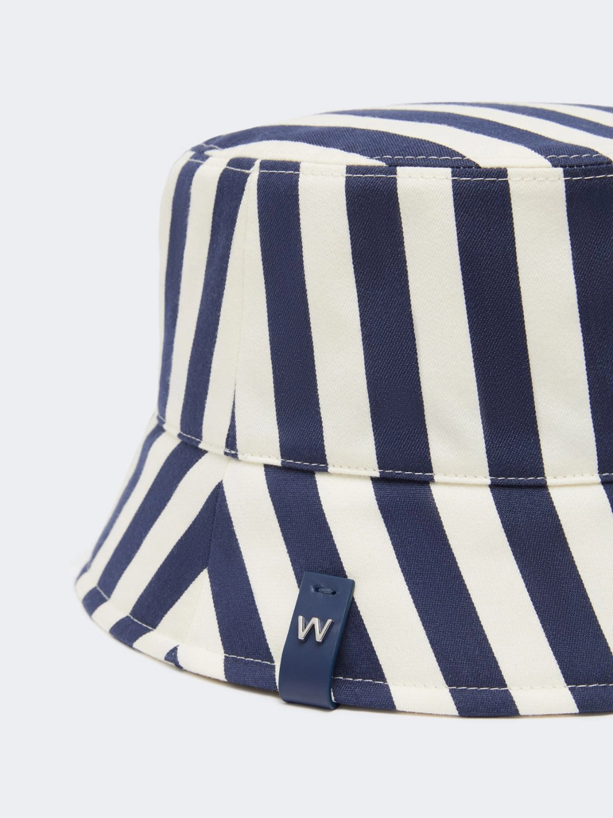 Cloche-style hat customised with a leather label and metal W logo on the edge.