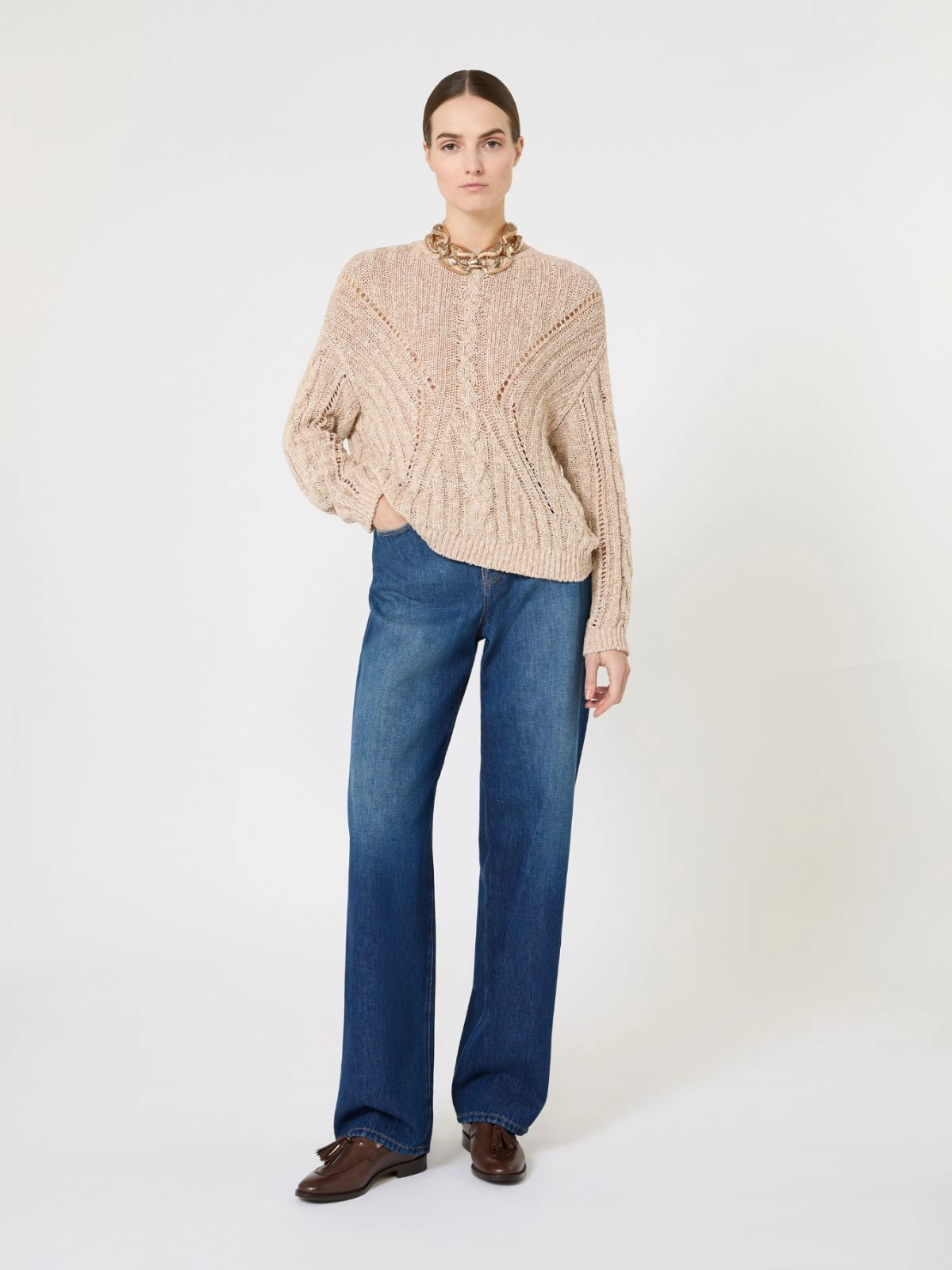 Boxy-fit cotton and lurex jumper - Natural